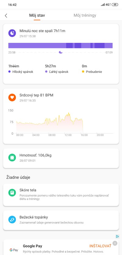 Náramok Mi Band 4 prešiel aktualizáciou senzorov v porovnaní s Mi Band 3 náramkom a preto by mal ponúkať presnejšie merania. Hodinky celkovo ponúkajú možnosť sledovania 6 športových aktivít: Outoorový beh, Indoorový beh, Bicyklovanie, Chôdzu, Posilňovanie a Plávanie. Veľmi nás potešila možnosť monitorovania posilňovania a to preto, že túto funkciu neponúkajú ani oveľa drahšie hodinky akými sú Xiaomi Amazfit Stratos, ktoré sme testovali niekoľko mesiacov dozadu. Našli sme však predsa jeden nedostatok. Počas cvičenia používame Bluetooth slúchadlá a v prípade monitorovania športovej aktivity neviete využiť možnosť prepínania hudby. Inými slovami, museli sme monitorovanie zastaviť a až potom sme mohli prepnúť skladbu na ďalšiu. Na druhú stranu sme funkciu prepínania hudby využili aspoň v aute, kde sme po pripojení telefónu nemuseli piesne prepínať cez mobil, ale urobili sme tak prostredníctvom náramku (pozn. redakcie: novšie modely automobilov disponujú ovládacími prvkami priamo na volante, prípadne na displeji). Vďaka tejto funkcii sme sa mohli plne venovať vedeniu vozidla.